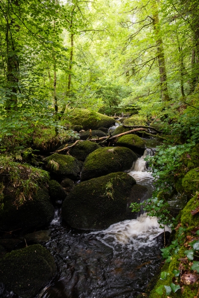 Nous récupérons un plan à l’office du tourisme, et partons tout d’abord sur le sentier du canal, qui serpente dans une forêt avec peu de présence humaine, ce qui est agréable. Toutefois, petit bémol : le chemin n’est pas balisé et le plan pas très précis, il n’est pas évident de s’y retrouver sur place. Néanmoins, nous retrouvons le GR le long de la route, pour rejoindre le circuit des rochers de la forêt, avec la mare aux fées et le saut du gouffre.
